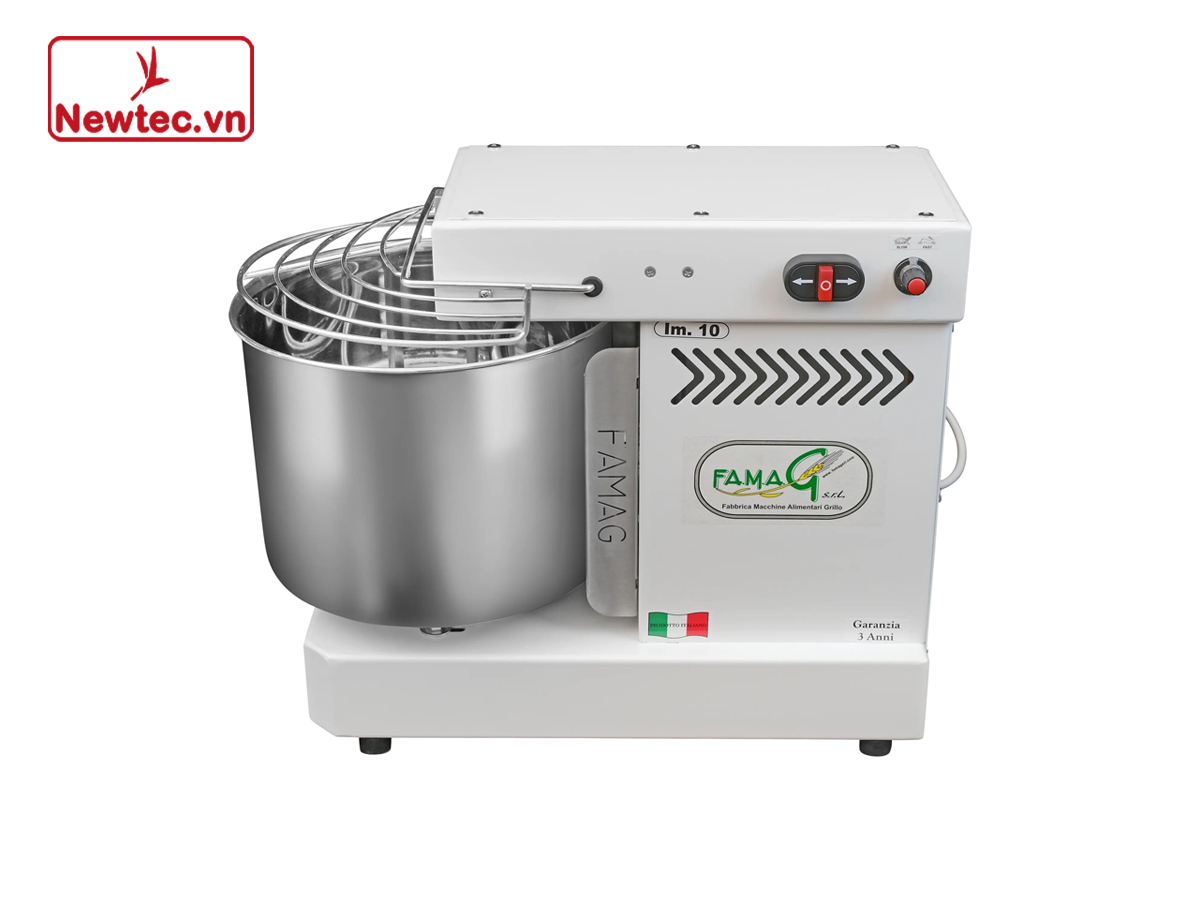 The FA.MAG IM10 10 Speeds HH mixer is the only countertop spiral mixer that allows you to work 7kg of flour + 3.5 liters of water at the same time in a small size. It has reverse gear, very useful for preparing the biga. Thanks to the new Brushless motor it is even more silent and efficient. It allows you to prepare doughs with high hydrations with extreme ease. It is among the smallest commercially available countertop spiral mixers. It does not require any maintenance. With its 10 speeds it allows you to make professional doughs very easily. Designed and built like large kneading machines, the IM10 10 Speed HH is suitable for both domestic and professional use. It does not require any maintenance.